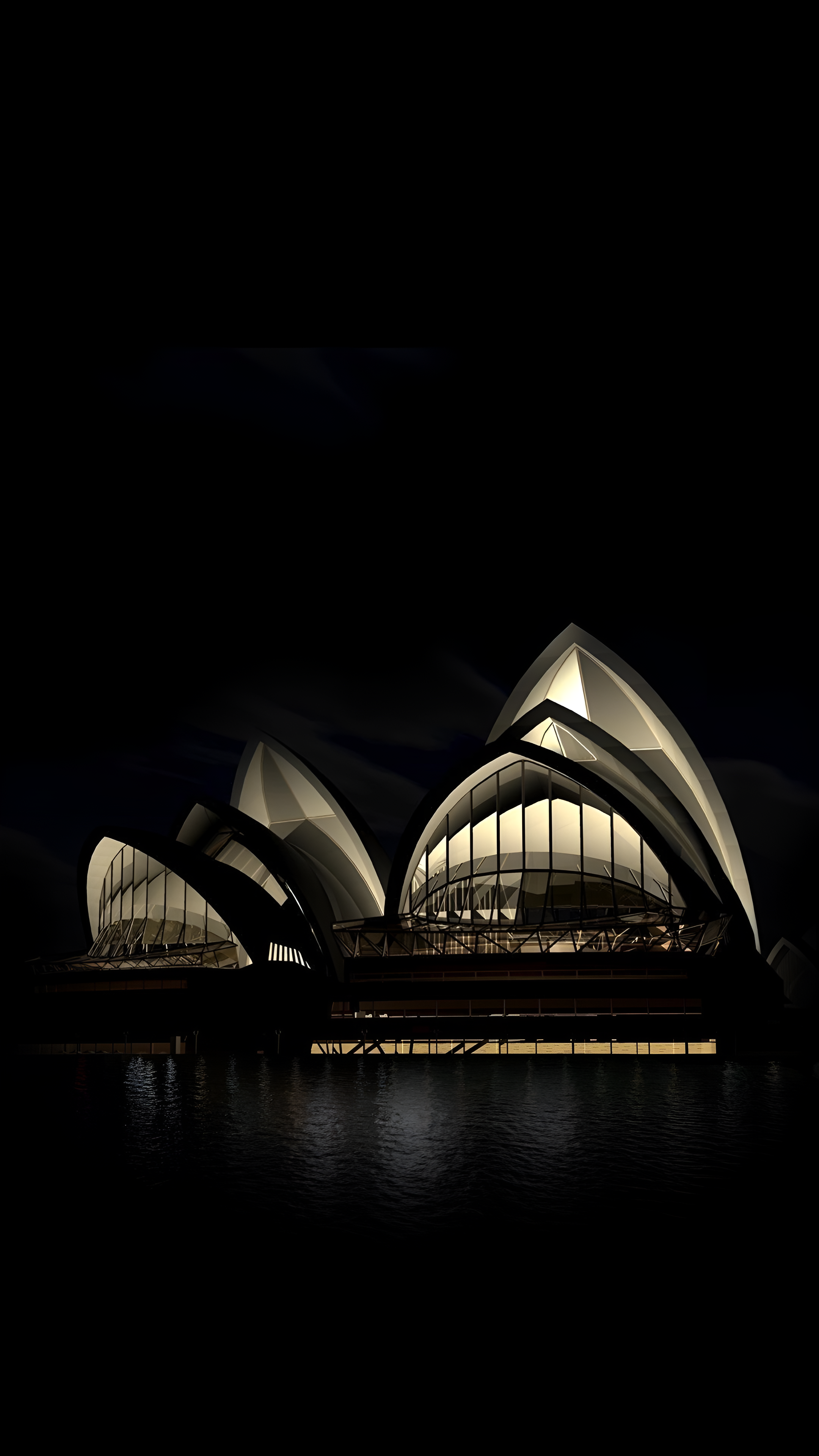 Marvel at the striking beauty of 'Luminous Icon: The Sydney Opera House at Night.' This image captures the iconic architectural masterpiece, its sail-like structures elegantly lit against a dark night sky. Reflected in the tranquil waters, the Opera House stands as a symbol of artistic innovation and cultural significance, inviting viewers to appreciate its unique design and the vibrant life it hosts.