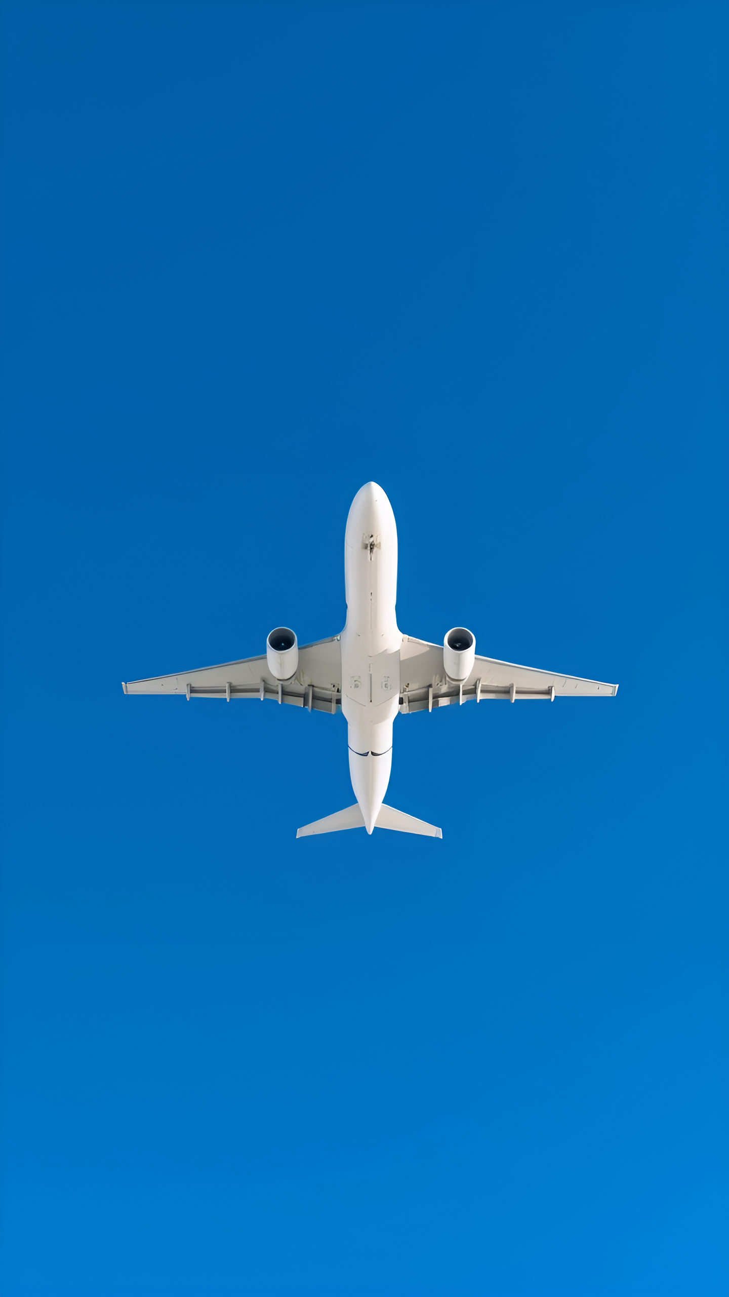 Soaring high! A crisp, clean shot of a white airplane against a vibrant blue sky. Feel the freedom and adventure of travel with this uplifting wallpaper.