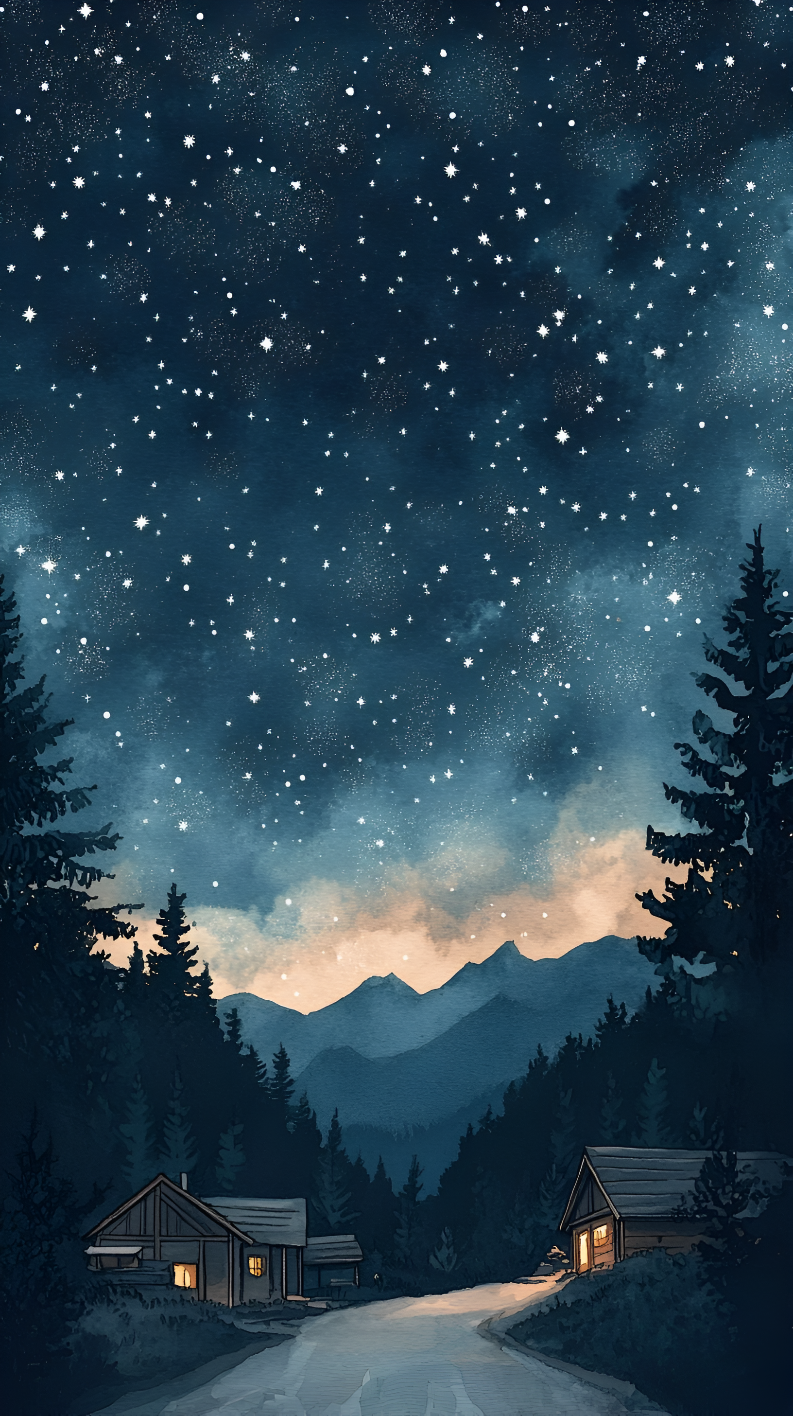Escape to a cozy mountain cabin under a breathtaking starry night sky. This artwork evokes feelings of peace, solitude, and wonder, perfect for inspiring your daily life.
