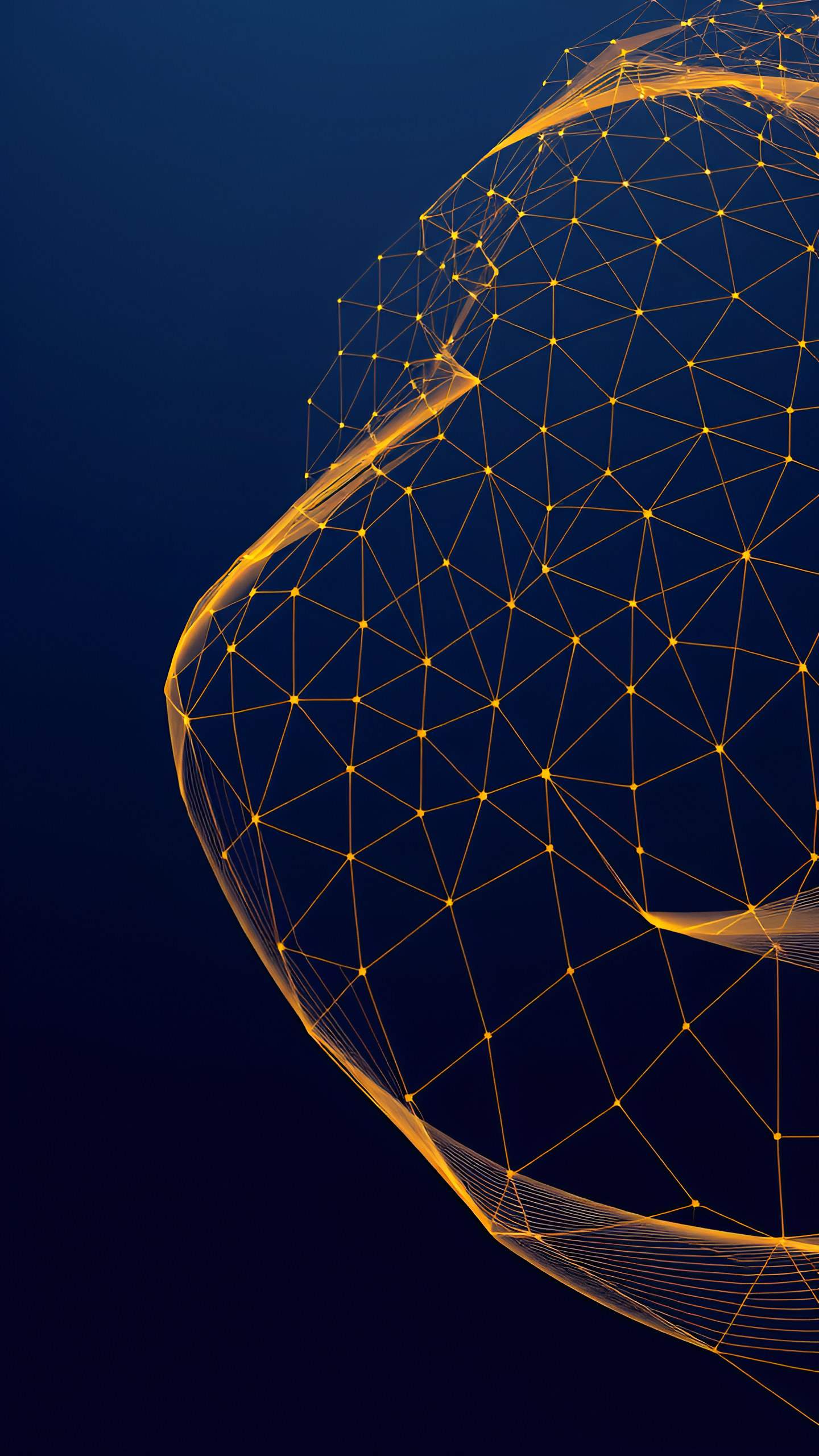 Abstract golden network glowing against a deep blue backdrop. Perfect for adding a modern and sophisticated look to your device with a touch of digital elegance.