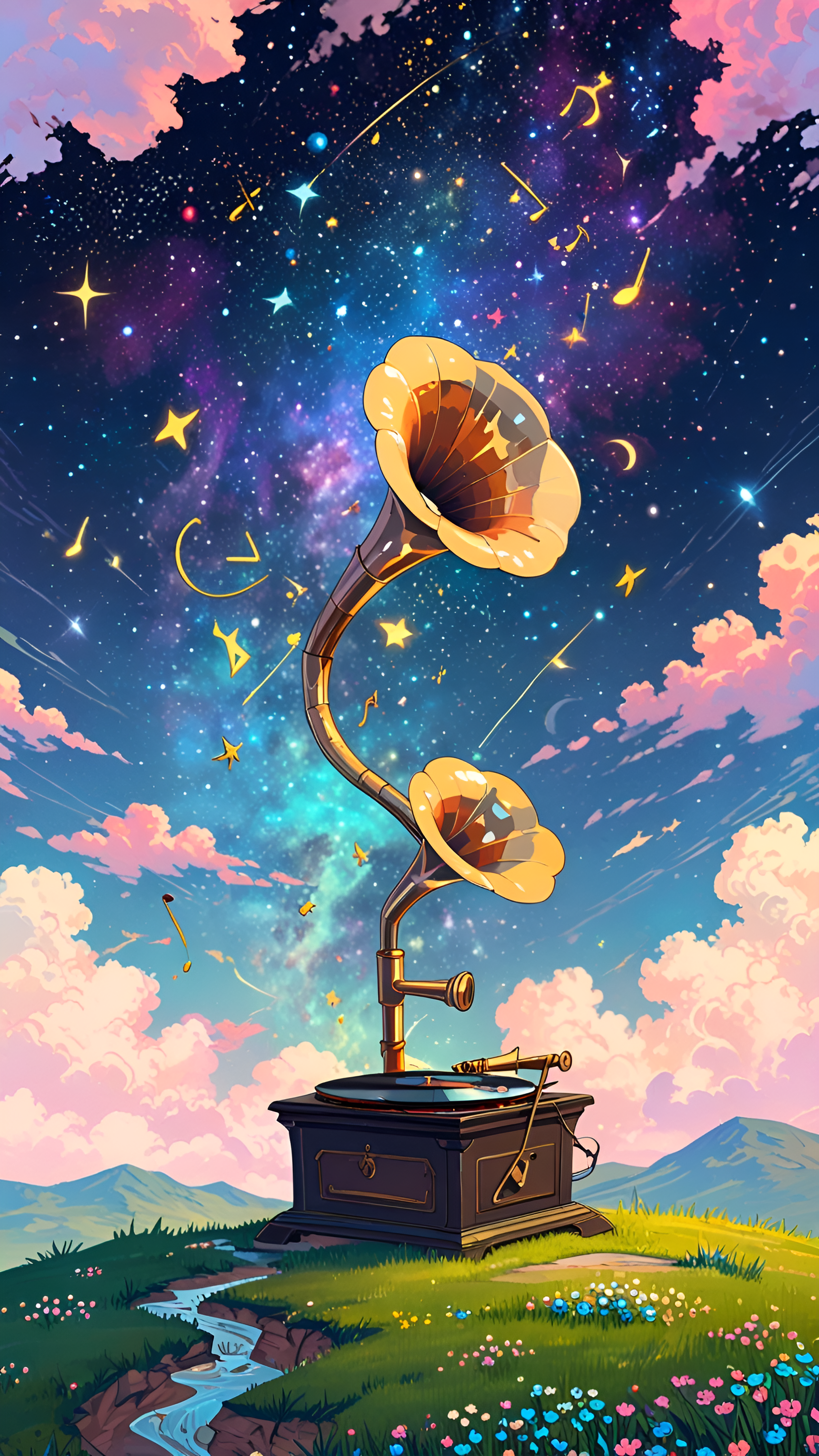 Download WallpaperCelestial Melodies: Gramophone Dreams