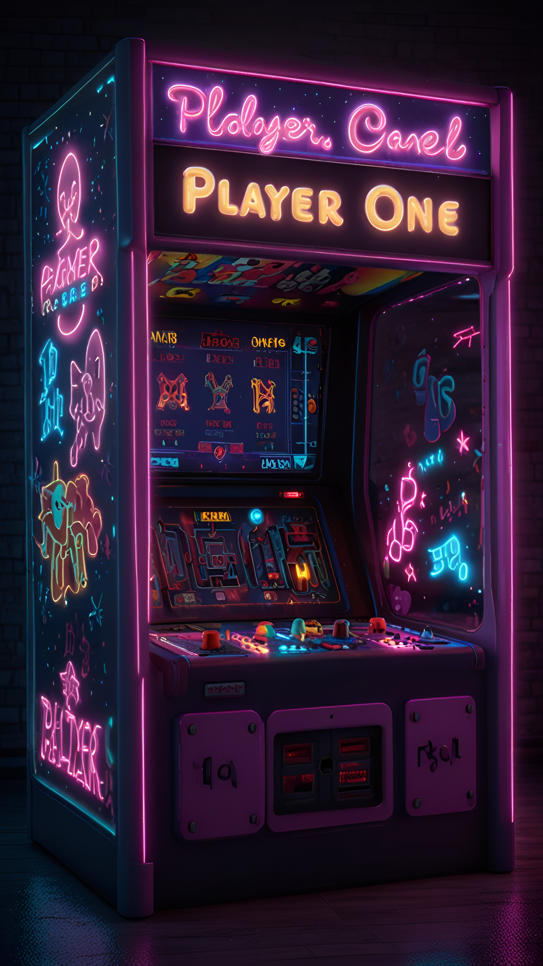 Immerse yourself in the glowing world of retro gaming. This vintage arcade machine pulses with neon hues, evoking a nostalgic and playful atmosphere for your digital space.