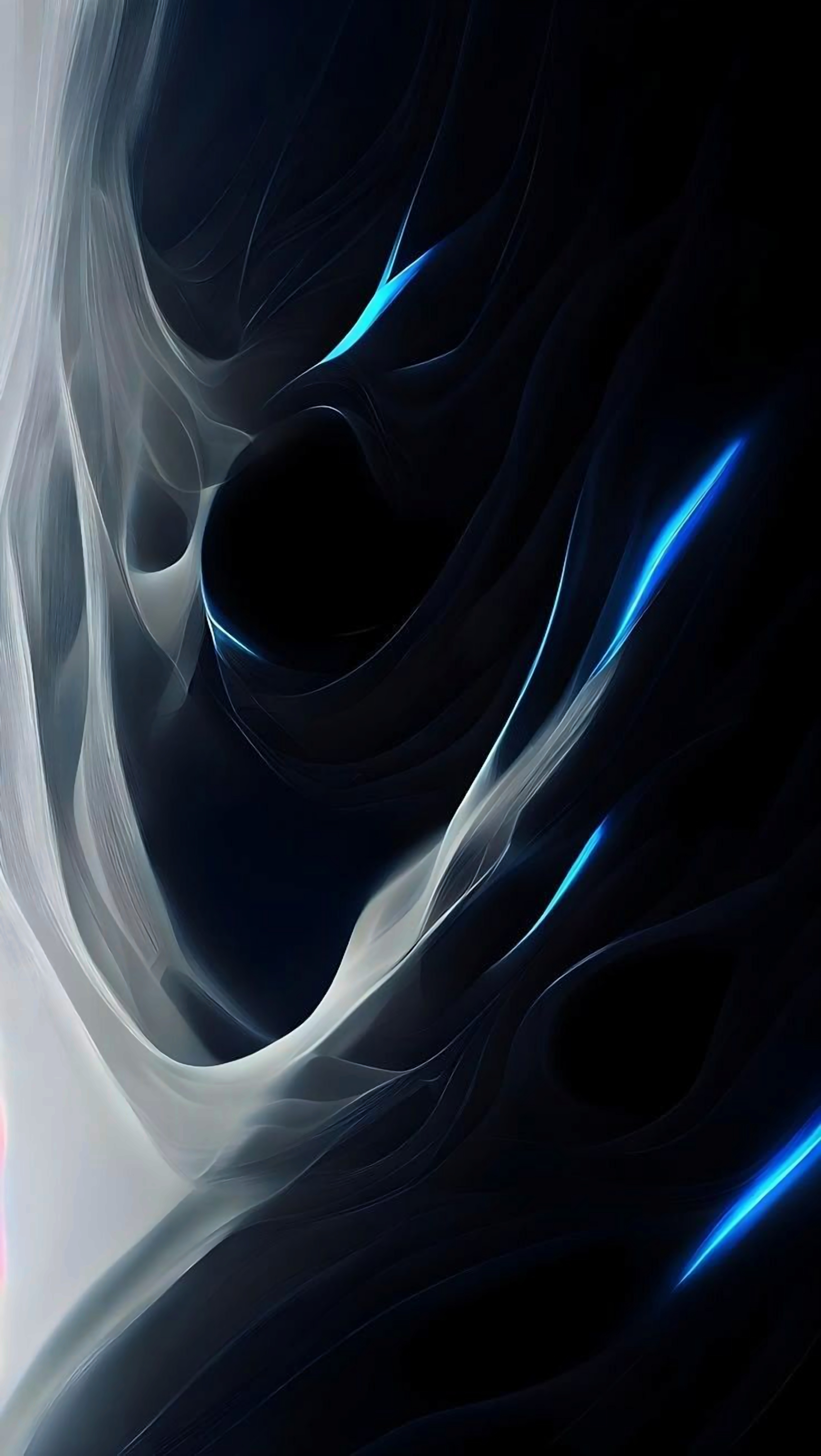 Immerse yourself in this abstract wallpaper, a mesmerizing flow of white and blue against a dark backdrop. The smooth lines and light accents create a sleek, modern aesthetic.