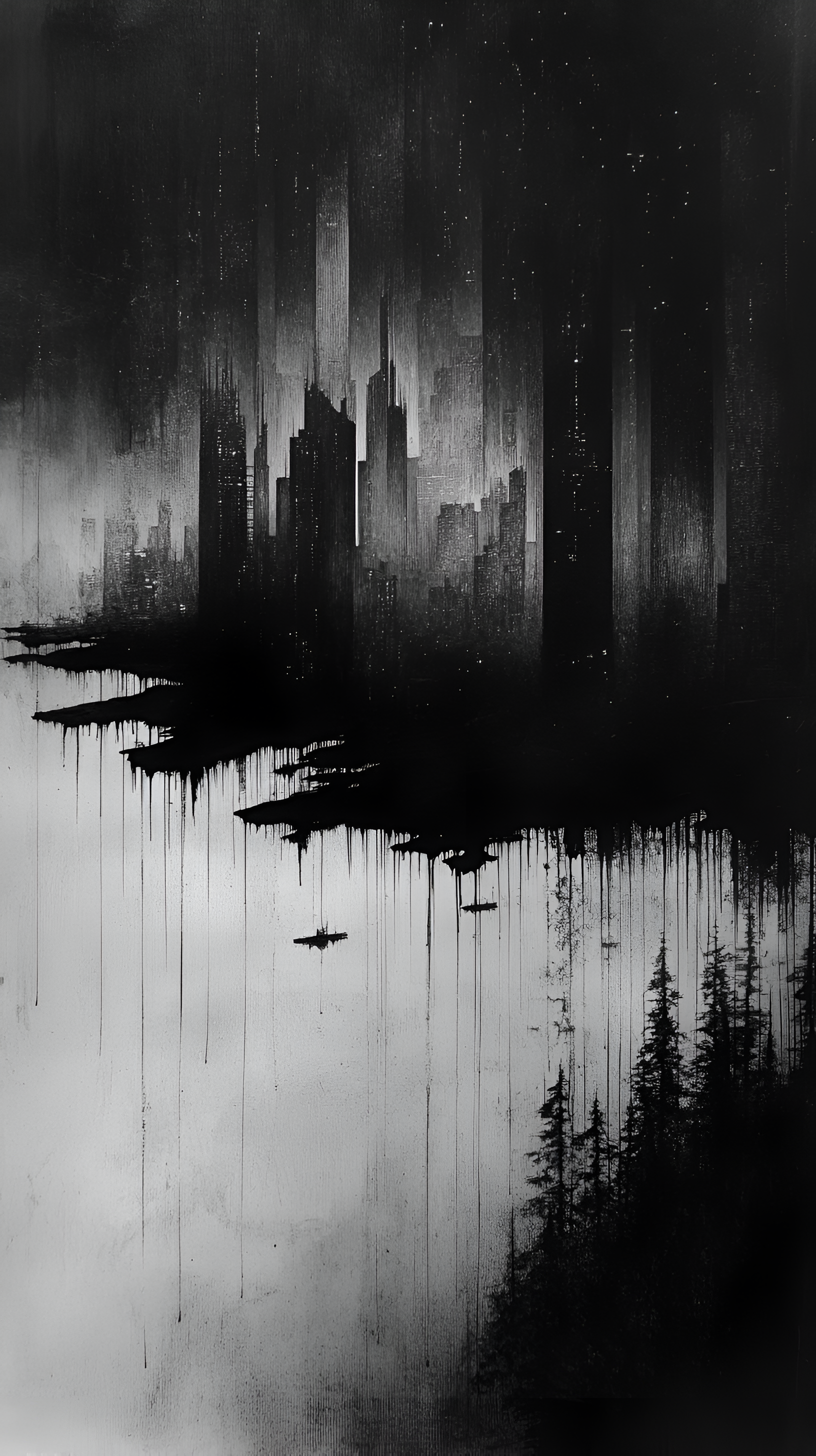 Experience the somber beauty of a decaying city. This noir-style wallpaper blends urban decay with natural elements, creating a uniquely haunting and captivating visual. Perfect for a dramatic, modern aesthetic.