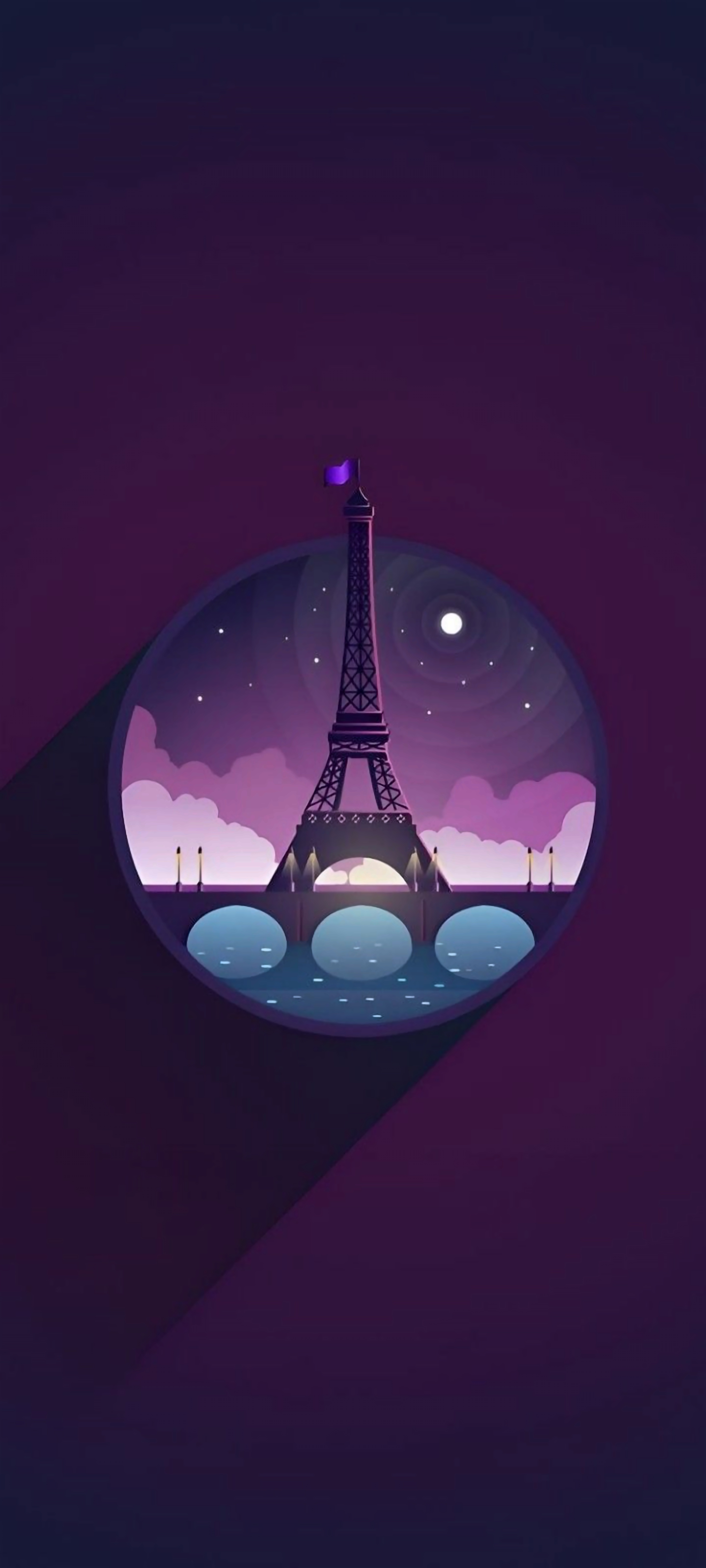 Escape to Paris with this dreamy, purple-toned wallpaper. The iconic Eiffel Tower rises above the Seine under a starlit sky, creating a serene and stylish ambiance.